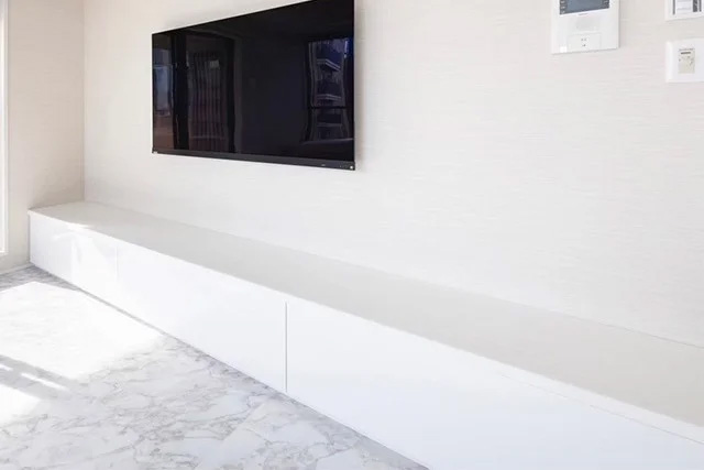 壁のサイズにぴったりと合わせたTVボード