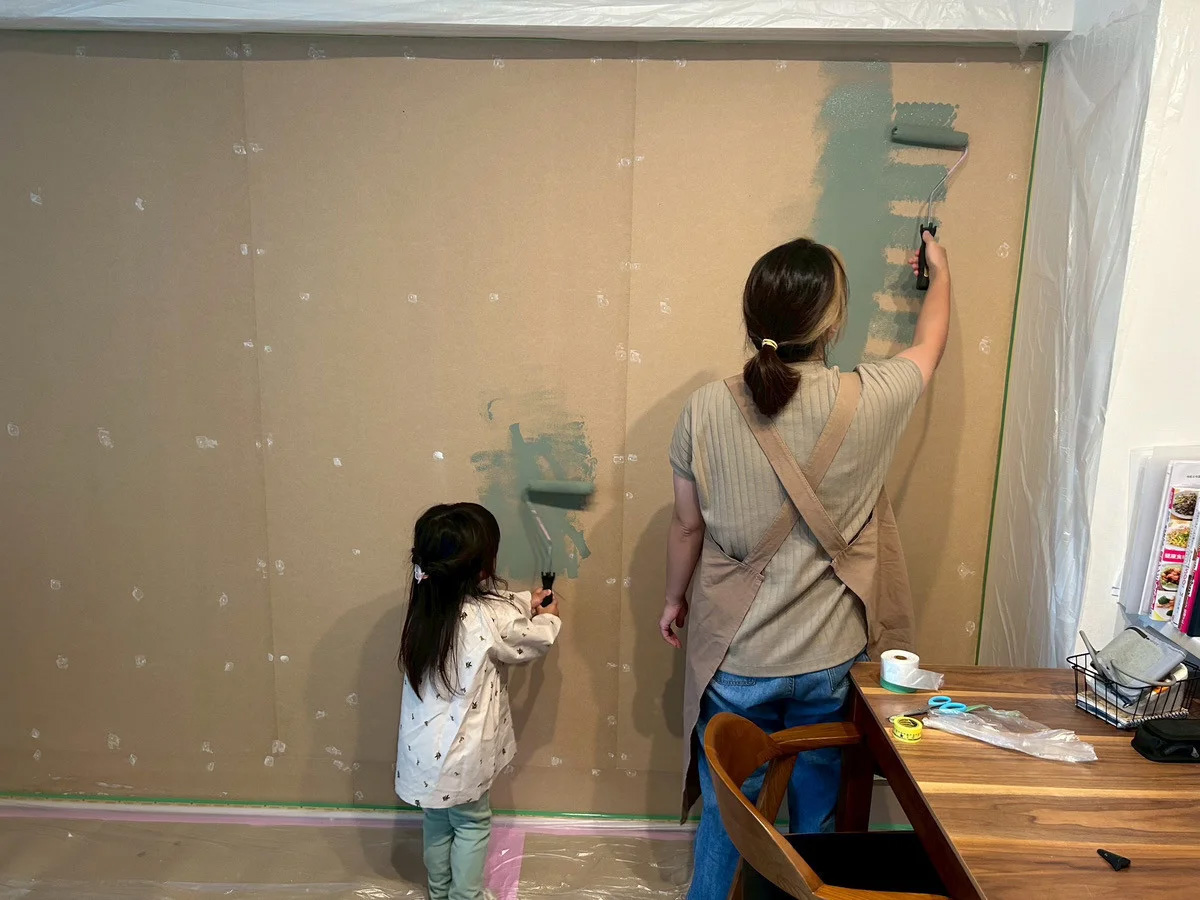 【家族で楽しむDIY塗装 × 防音リノベ】 クロスではなく塗装を選ぶことで、家族で手を動かす楽しさや思い出が生まれます。